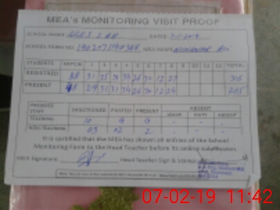 | Attendance Register | Head Teacher | MEA with School | Visit Proof |