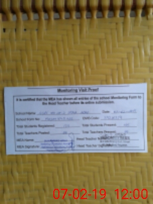 | Certified that this School was Inspected by the Undersigned MEA/DMO Today and the Information Stated Above is as Per Record. | |||||
