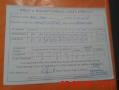| Attendance Register | Head Teacher | MEA with School | Visit Proof |