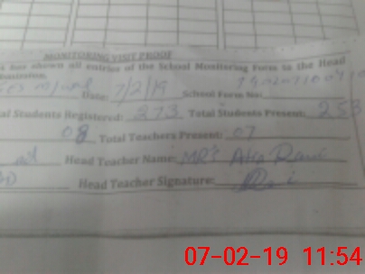 | Attendance Register | Head Teacher | MEA with School | Visit Proof |