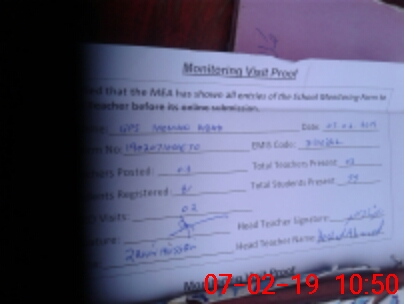 | Attendance Register | Head Teacher | MEA with School | Visit Proof |