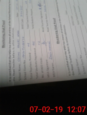 | Certified that this School was Inspected by the Undersigned MEA/DMO Today and the Information Stated Above is as Per Record. | |||||