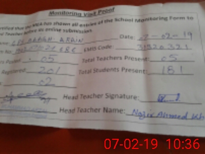 | EMIS Code: 31320321 | Name of School: GPS BAAGH ARAIN | |||
