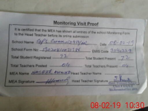 | EMIS Code: 31140229 | Name of School: GPS CHAK NO 434/6-R | |||
