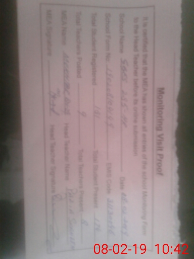 | Certified that this School was Inspected by the Undersigned MEA/DMO Today and the Information Stated Above is as Per Record. | |||||