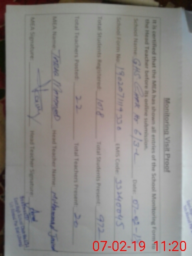 | Certified that this School was Inspected by the Undersigned MEA/DMO Today and the Information Stated Above is as Per Record. | |||||