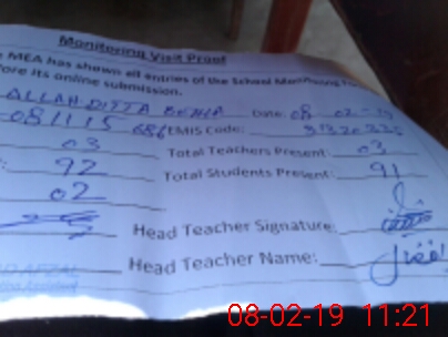 | EMIS Code: 31320335 | Name of School: GPS ALLAH DITTA BHELA | |||