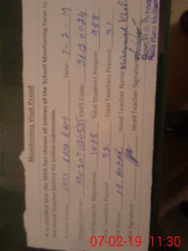 | EMIS Code: 36120024 | Name of School: GHSS RAJA RAM SHUJABAD | |||