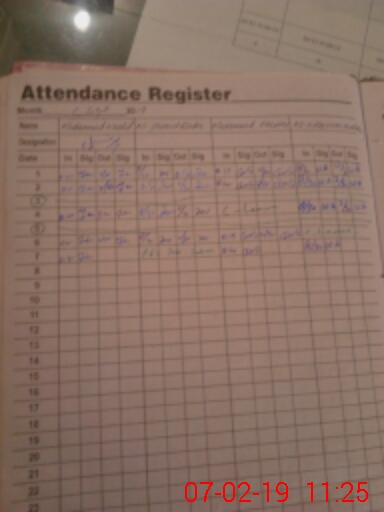 | CNIC | Full Name | Designation | R/C | Absence During Last Calender Month |