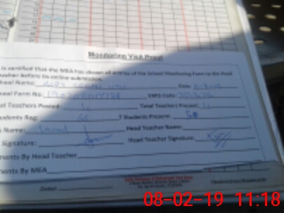 | Attendance Register | Head Teacher | MEA with School | Visit Proof |
