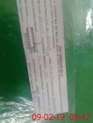 | Certified that this School was Inspected by the Undersigned MEA/DMO Today and the Information Stated Above is as Per Record. | |||||