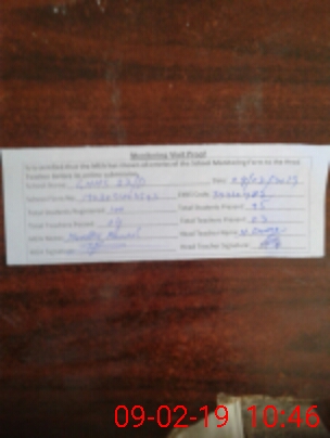 | Certified that this School was Inspected by the Undersigned MEA/DMO Today and the Information Stated Above is as Per Record. | |||||