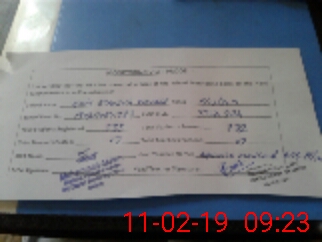 | Monitoring Date: 11-02-2019 | Start Time: 11-02-2019 08:41 AM | End Time: 11-02-2019 09:36 AM | Name of MEA: ZM**** Ak**** | |