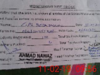 | Certified that this School was Inspected by the Undersigned MEA/DMO Today and the Information Stated Above is as Per Record. | |||||