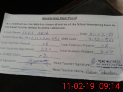 | Attendance Register | Head Teacher | MEA with School | Visit Proof |
