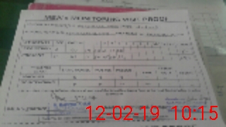 | Monitoring Date: 12-02-2019 | Start Time: 12-02-2019 10:00 AM | End Time: 12-02-2019 10:30 AM | Name of MEA: M.Ra**** Kh**** (R**** | |