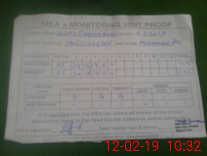 | Attendance Register | Head Teacher | MEA with School | Visit Proof |