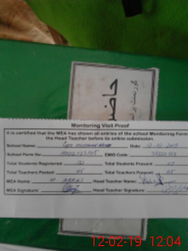 | EMIS Code: 39220164 | Name of School: GPS MOHALA MUZAFFAR ABAD | |||