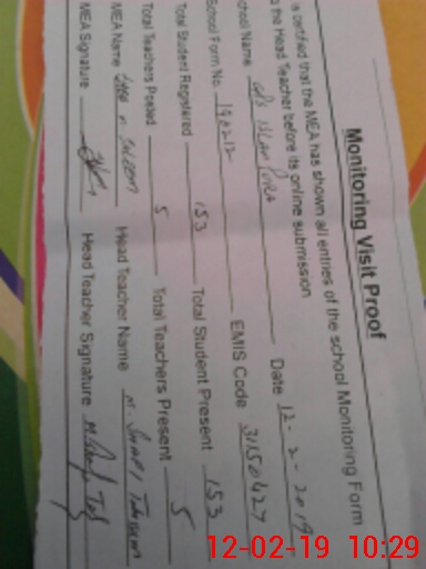 | Certified that this School was Inspected by the Undersigned MEA/DMO Today and the Information Stated Above is as Per Record. | |||||