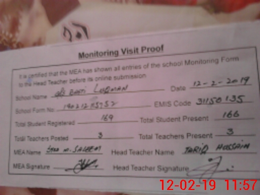 | Certified that this School was Inspected by the Undersigned MEA/DMO Today and the Information Stated Above is as Per Record. | |||||