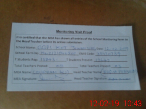 | EMIS Code: 35430739 | Name of School: GGPS KOT JEWAN SINGH | |||