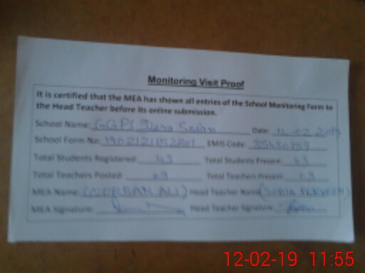 | Certified that this School was Inspected by the Undersigned MEA/DMO Today and the Information Stated Above is as Per Record. | |||||