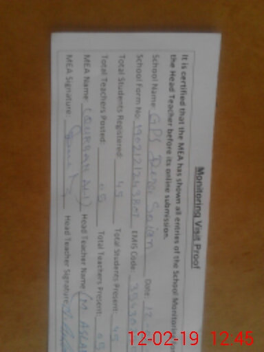 | EMIS Code: 35430295 | Name of School: GPS DERA SOIAN | |||