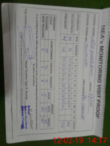 | Attendance Register | Head Teacher | MEA with School | Visit Proof |