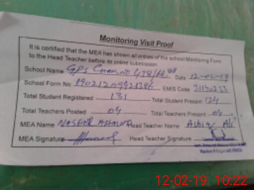 | EMIS Code: 31140233 | Name of School: GPS CHAK NO 438/6-R WEST NO. 2 | |||