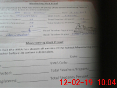 | Attendance Register | Head Teacher | MEA with School | Visit Proof |