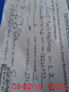 | Monitoring Date: 08-02-2019 | Start Time: 08-02-2019 09:26 AM | End Time: 08-02-2019 10:03 AM | Name of MEA: Mu**** Ja**** An**** | |
