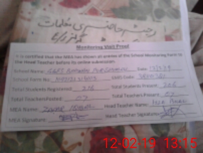 | Certified that this School was Inspected by the Undersigned MEA/DMO Today and the Information Stated Above is as Per Record. | |||||