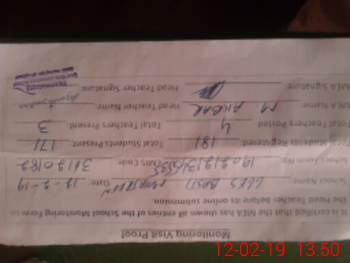 | Certified that this School was Inspected by the Undersigned MEA/DMO Today and the Information Stated Above is as Per Record. | |||||