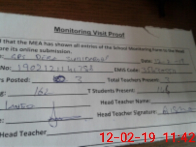 | Attendance Register | Head Teacher | MEA with School | Visit Proof |