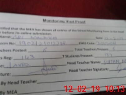 | Certified that this School was Inspected by the Undersigned MEA/DMO Today and the Information Stated Above is as Per Record. | |||||