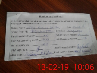 | Monitoring Date: 13-02-2019 | Start Time: 13-02-2019 09:49 AM | End Time: 13-02-2019 10:10 AM | Name of MEA: Sa**** Hu**** | |