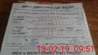 | Monitoring Date: 13-02-2019 | Start Time: 13-02-2019 09:30 AM | End Time: 13-02-2019 10:11 AM | Name of MEA: M.Ra**** Kh**** (R**** | |