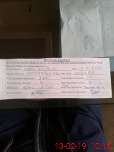| Certified that this School was Inspected by the Undersigned MEA/DMO Today and the Information Stated Above is as Per Record. | |||||
