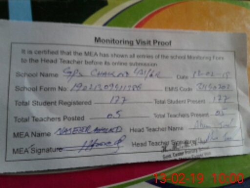 | Attendance Register | Head Teacher | MEA with School | Visit Proof |