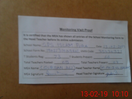 | EMIS Code: 35430321 | Name of School: GPS ISLAM PURA | |||