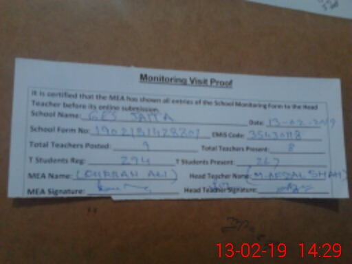 | Certified that this School was Inspected by the Undersigned MEA/DMO Today and the Information Stated Above is as Per Record. | |||||