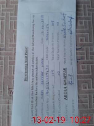 | Certified that this School was Inspected by the Undersigned MEA/DMO Today and the Information Stated Above is as Per Record. | |||||