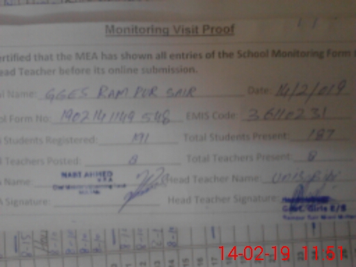 | EMIS Code: 36110231 | Name of School: GGES RAM PUR SAIR MIANI MULTAN | |||