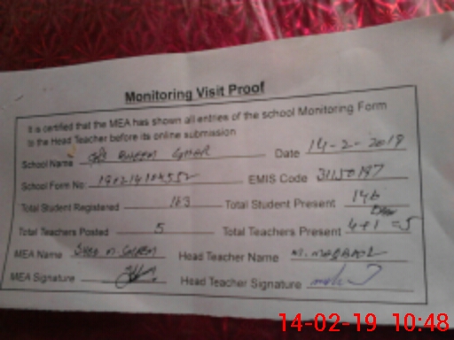 | Certified that this School was Inspected by the Undersigned MEA/DMO Today and the Information Stated Above is as Per Record. | |||||
