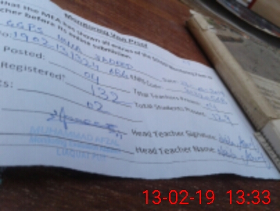 | Name: MA**** SA**** Designation: (School Headmaster's/Headmistress's) PST Phone/Cell Number: 03**** |