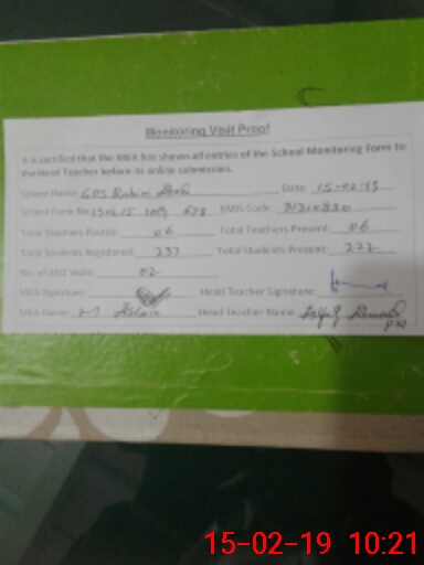 | Monitoring Date: 15-02-2019 | Start Time: 15-02-2019 09:50 AM | End Time: 15-02-2019 10:23 AM | Name of MEA: Mu**** As**** -KP**** | |