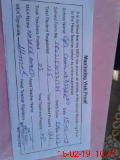 | Certified that this School was Inspected by the Undersigned MEA/DMO Today and the Information Stated Above is as Per Record. | |||||