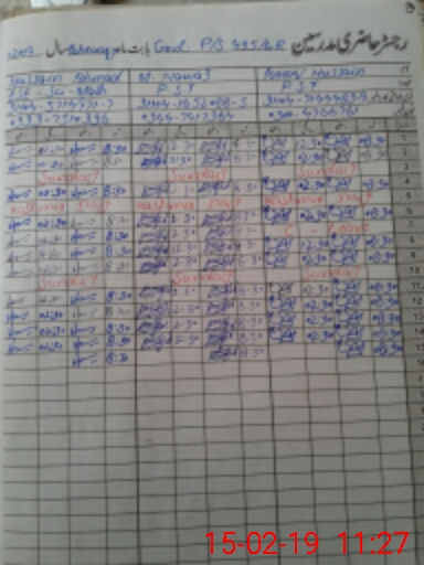 | CNIC | Full Name | Designation | R/C | Absence During Last Calender Month |