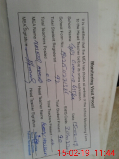 | Attendance Register | Head Teacher | MEA with School | Visit Proof |