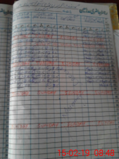 | CNIC | Full Name | Designation | R/C | Absence During Last Calender Month |
